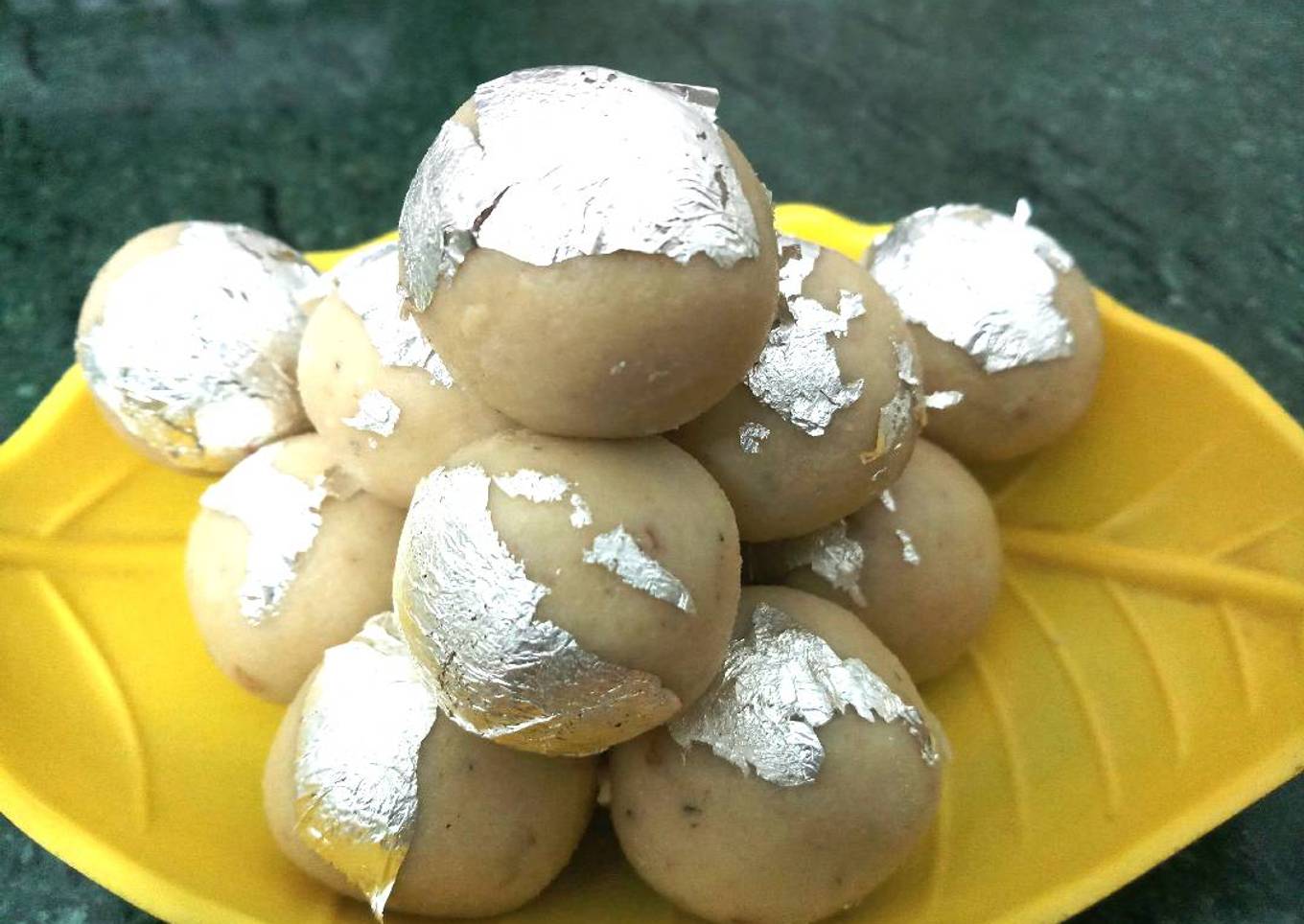 - Ab hath pe ghee laga ke laddu banaye aur uppar se chandi ke vark se sajaye ☺️