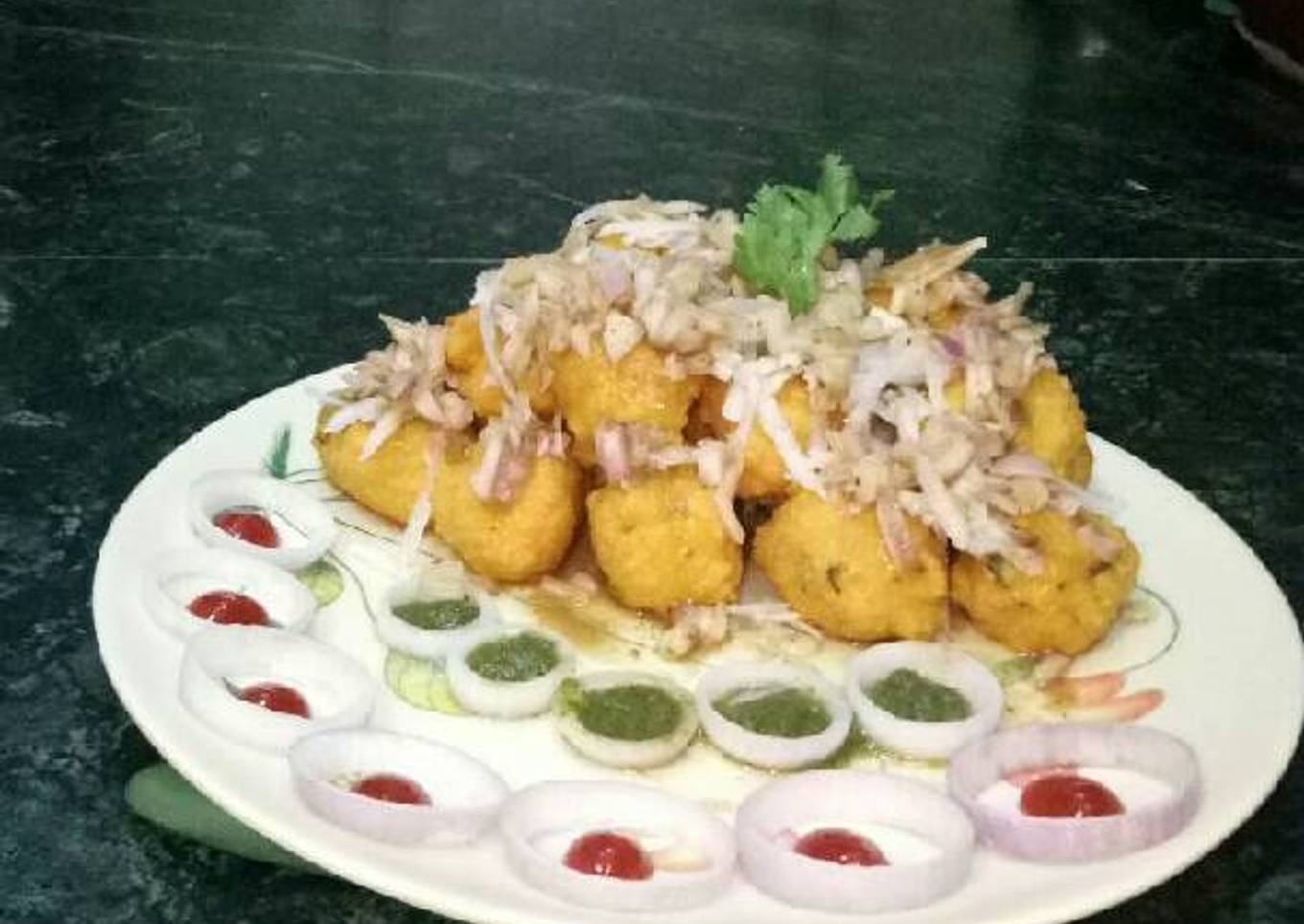 - Oil garamhone par choti choti pakodi fry kar ek plate mein plateing karein ram laddu ke upar green chutney spread kar grated redish spread kar imli chutney ko bhi spread kar green coriander leaf decorat kar sarve karein lijiye ready to eat enjoy friends thanks