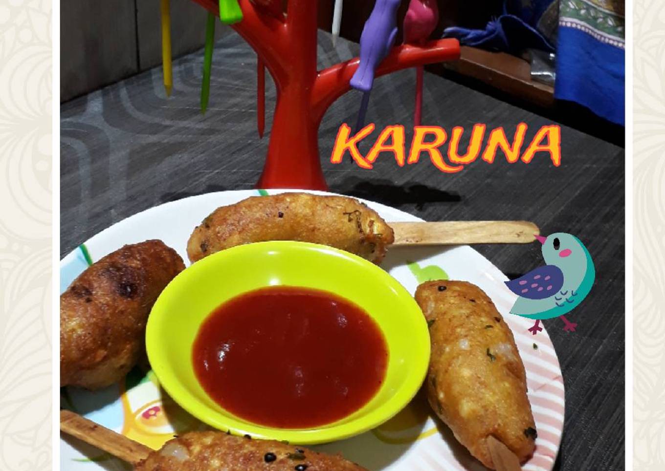 - Apply oil to hand and take mixture and flatten it and ice cream sticks in middle and roll them into lollipop shape. Roll them in corn flour mixture and bind them properly.
