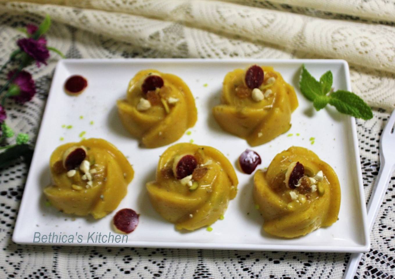 #dussehra - Sooji Halwa or Semolina pudding is a very common sweet prepared in many households on various occasions. It is one of the easiest desserts that can be dished out in a ziffy. So why not try it, but with a difference? Add some apple puree to it for an exotic twist. Give an appealing and an appetizing look by spooning them into silicone moulds. Serve these beauties on festive occasions and enjoy with family and friends.